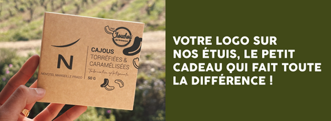 L'étui se décline en deux saveurs : des chouchous de cajou ou d'Amandes Françaises. L'emballage est sobre, et recyclable ; c'est un cadeau gourmand, mais aussi éco-responsables ! ♻️
